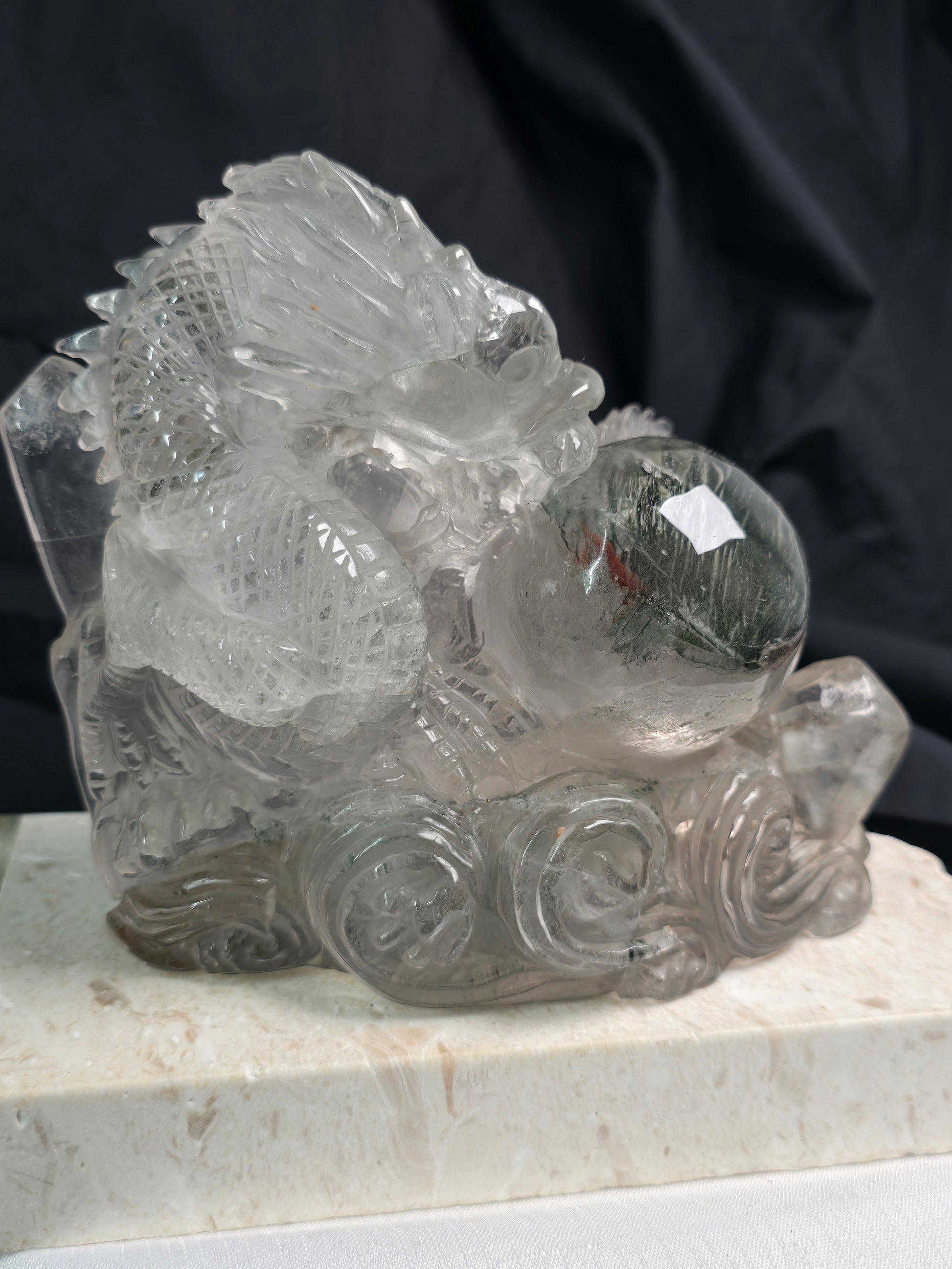 AAAA+ Grade Hand Carved Garden Quartz Dragon with Sphere