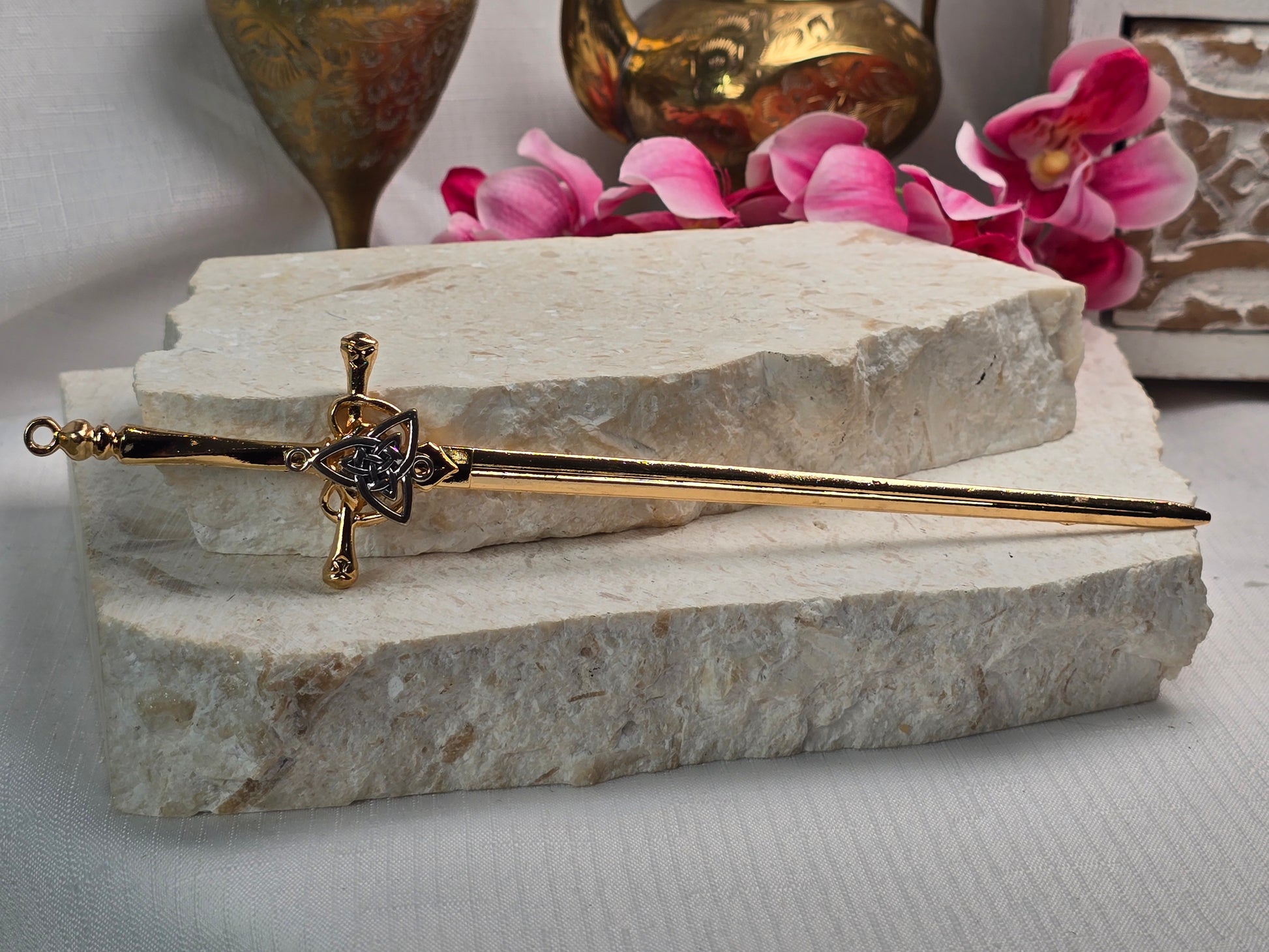 Gold metal Triquetra Athame - 20x4cm, 80g