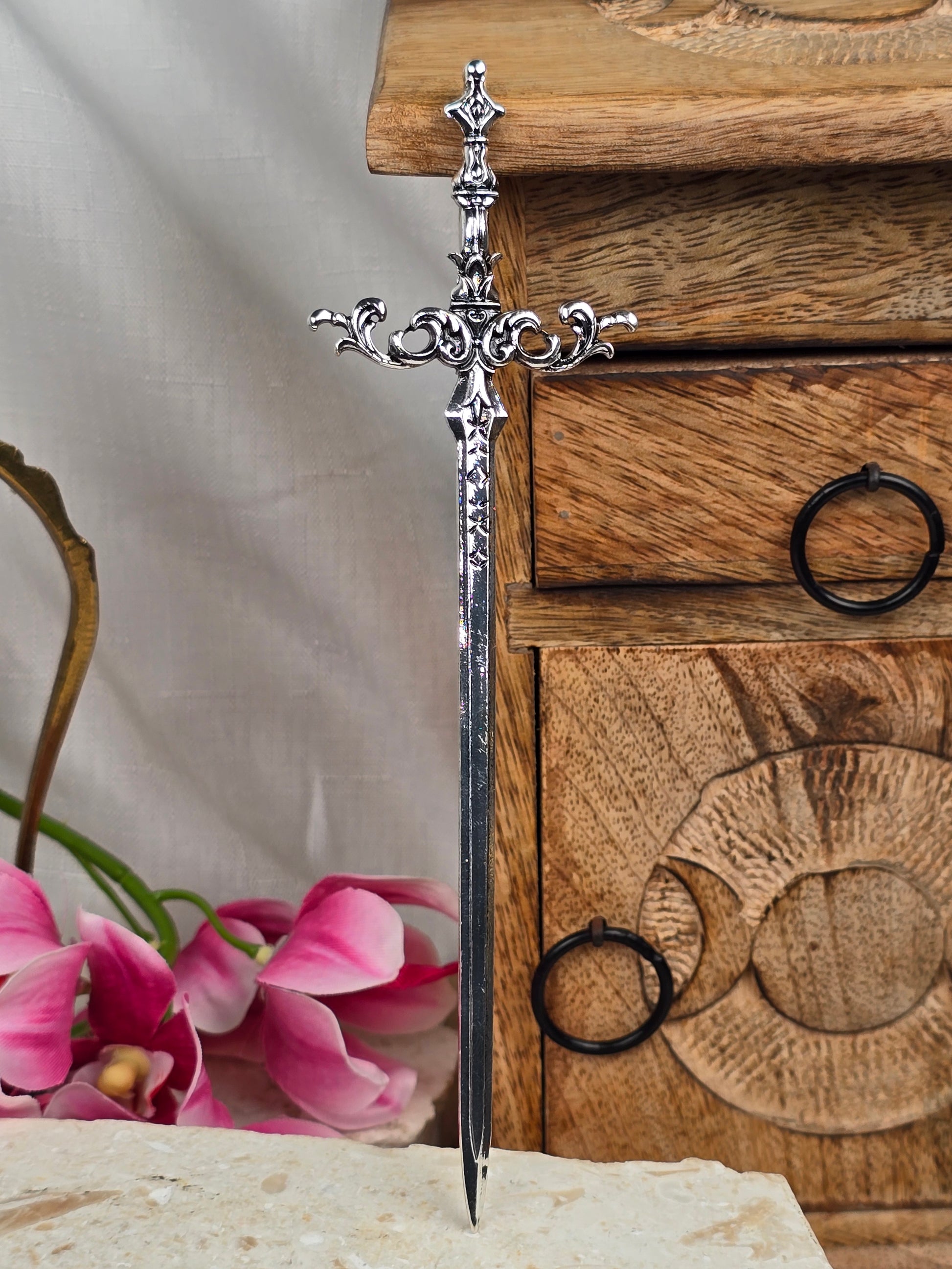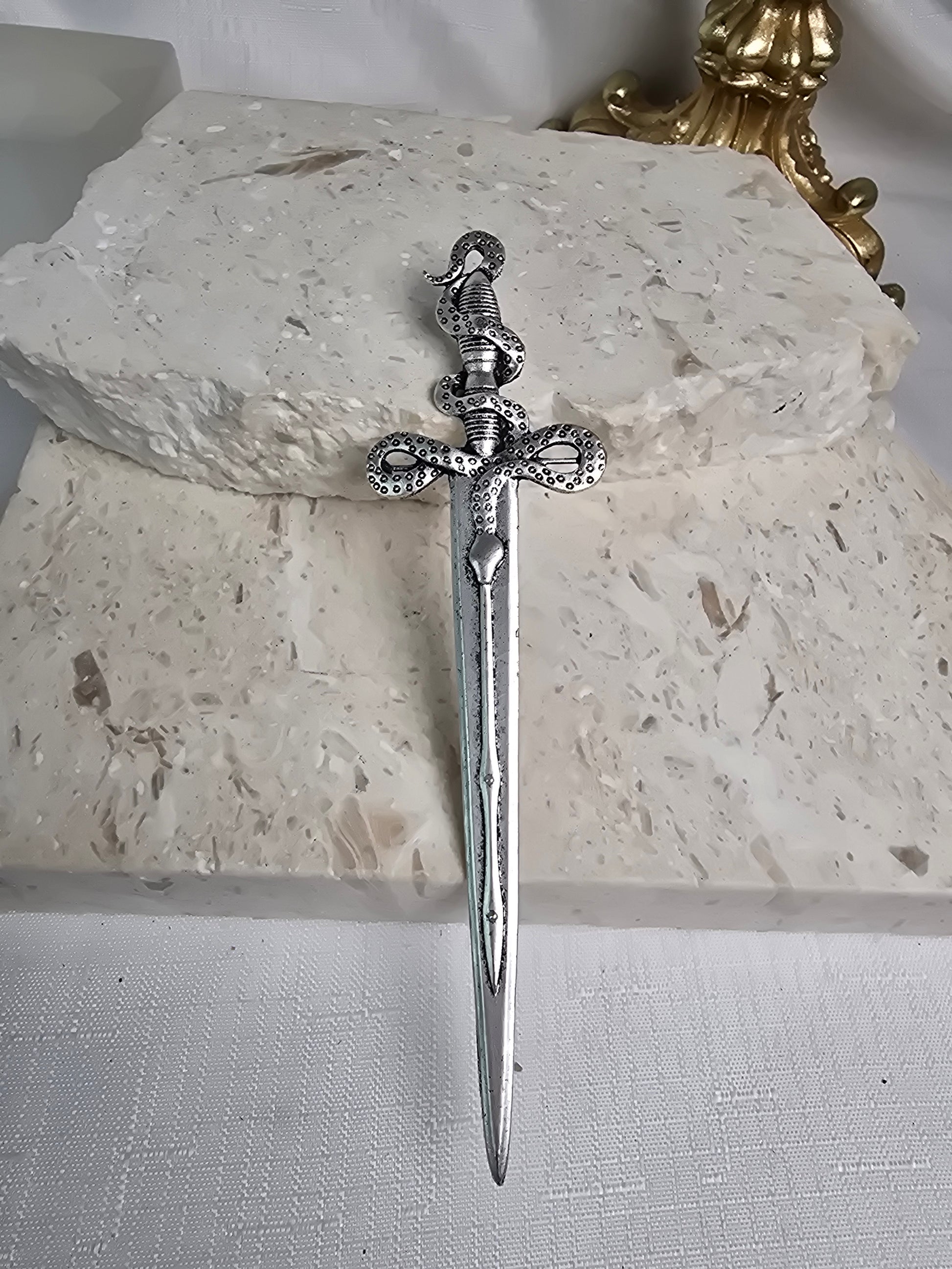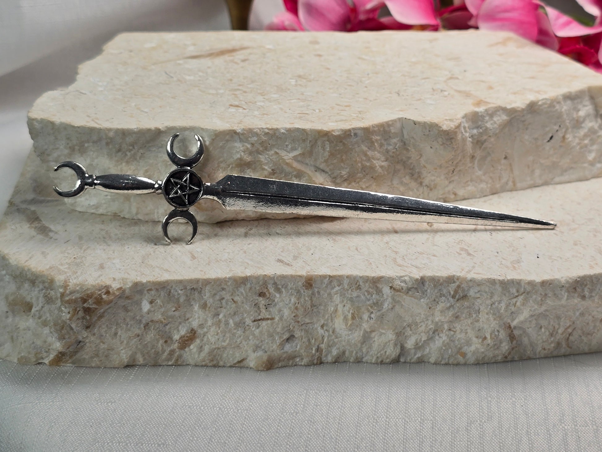 Silver metal Triple Moon Athame - 15x4cm, 80g