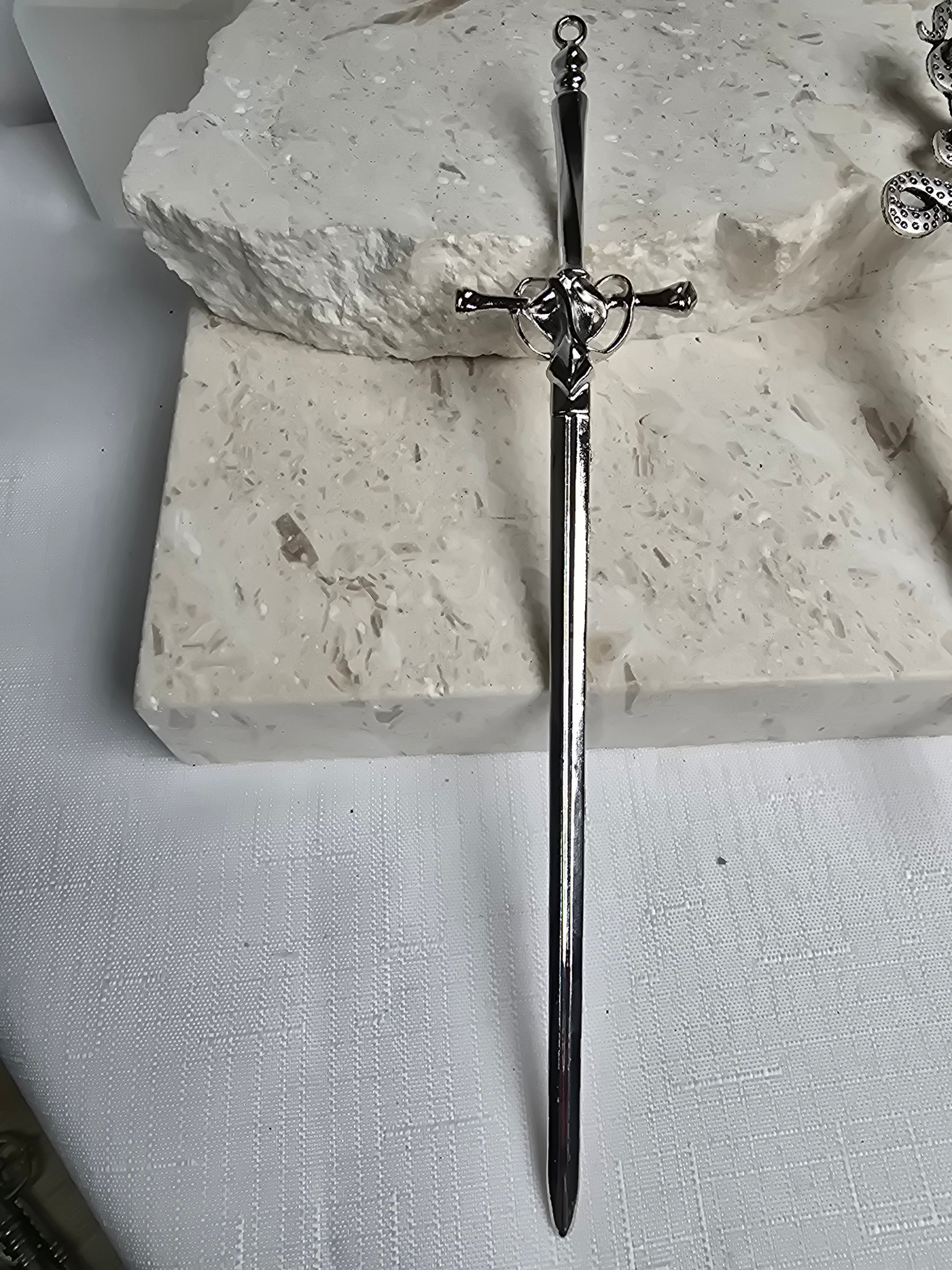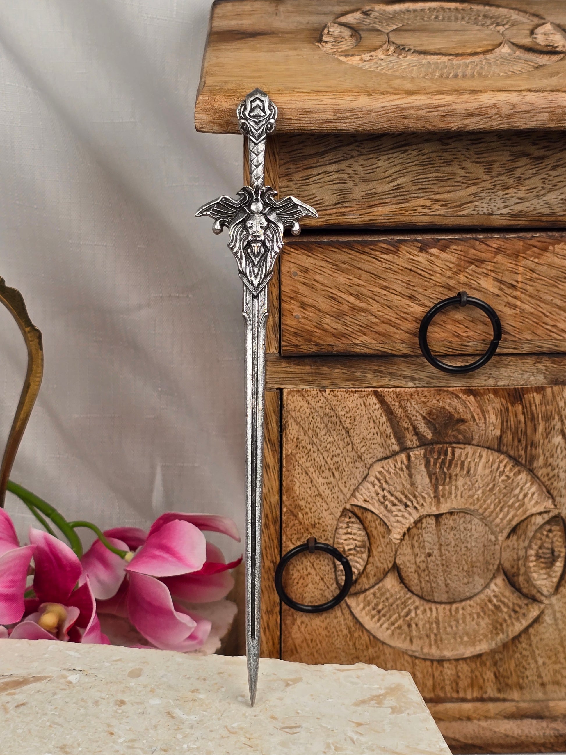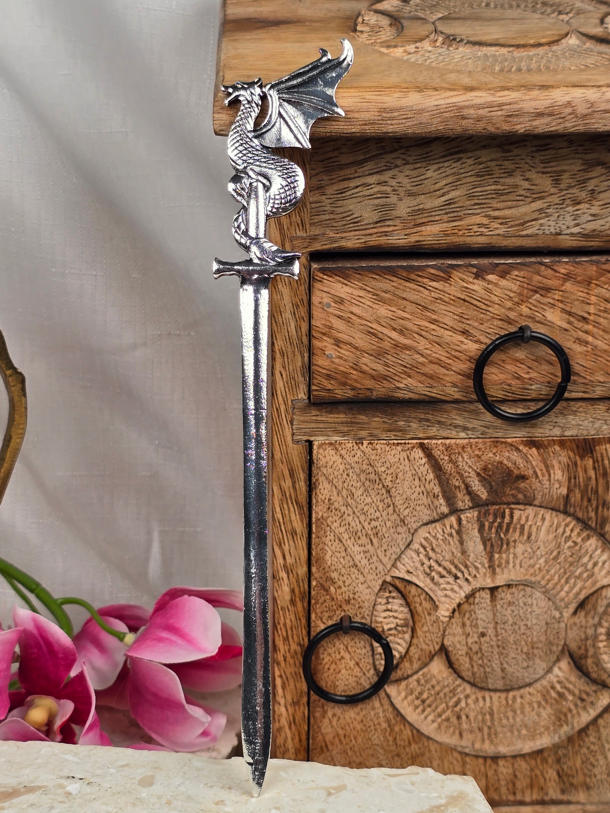 Silver metal Triple Moon Athame - 15x4cm, 80g