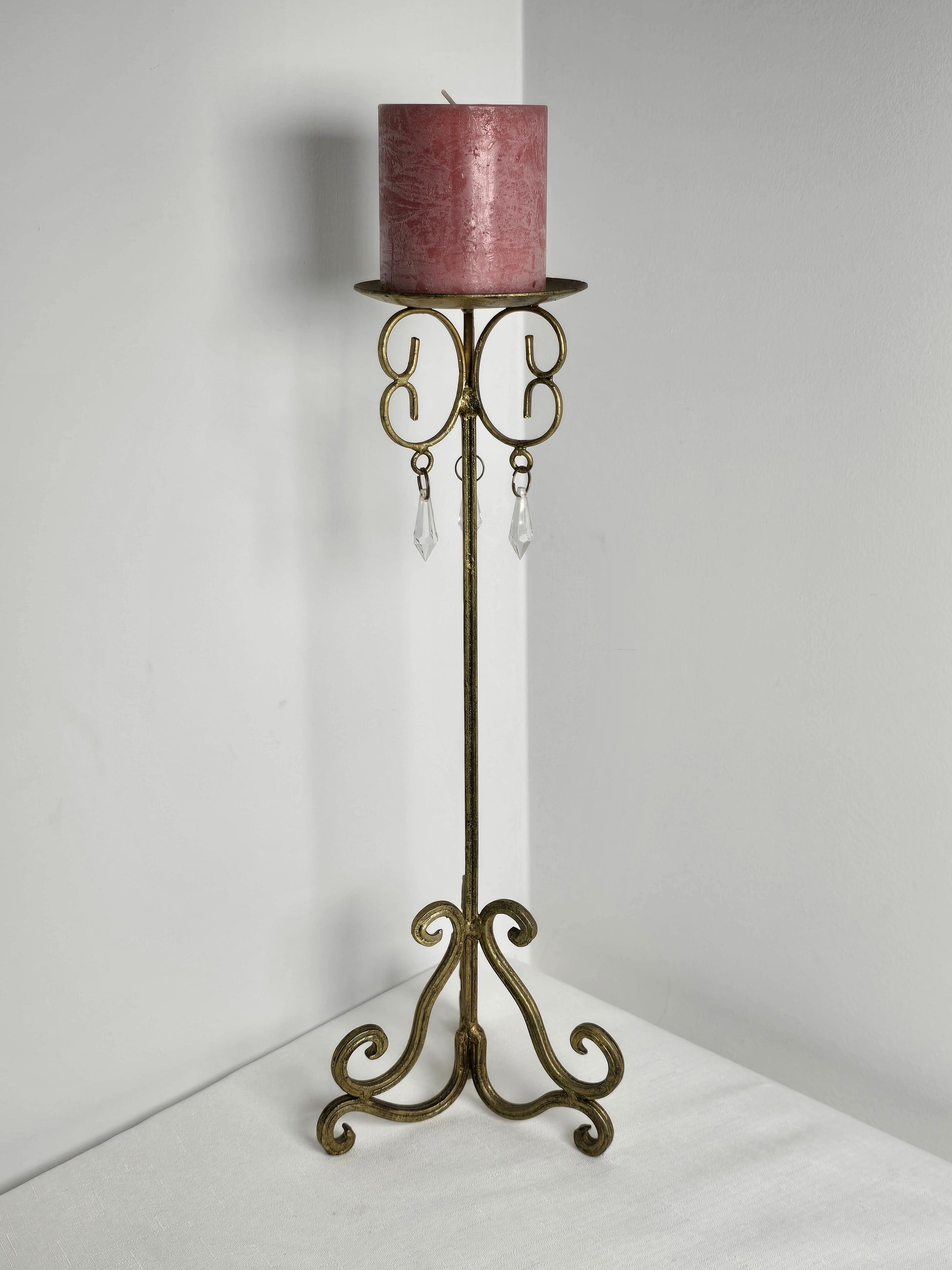 Shabby Chic Gold Metal with Crystal Drop Candle stand